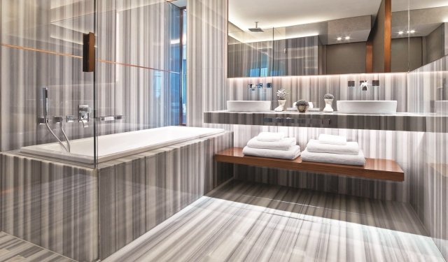 İstanbul Şişli'de bulunan St.Regis Otel'de banyolarda Efendioğlu Mermer'in çizgi takip Ekvator isimli ürünü, odalarda ise Maroon Marinace isimli ürünü kullanılmıştır.